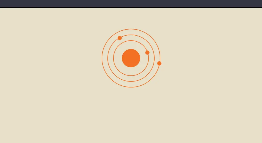 由三个圆环和一个中心的大圆点,以及在圆环上移动的小圆点组成,以下是html、css代码以及效果图