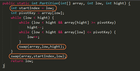 在hight下标左移的过程中,我们目的是找出比基准元素小的,然后进行交换。