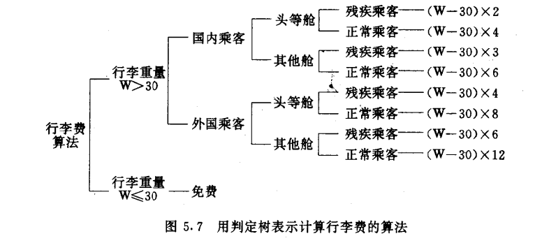 判定表由四部分组成:左上为所有的条件,左下是所有可能的动作,右上是各种条件组合的一个矩阵,右下是每种条件组合相对应的动作。