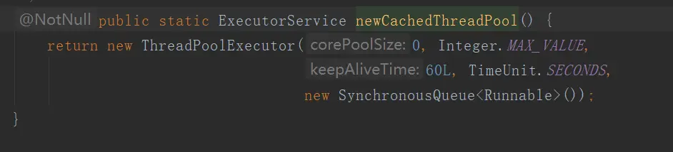 最大线程数maximumPoolSize:Integer.MAX_VALUE