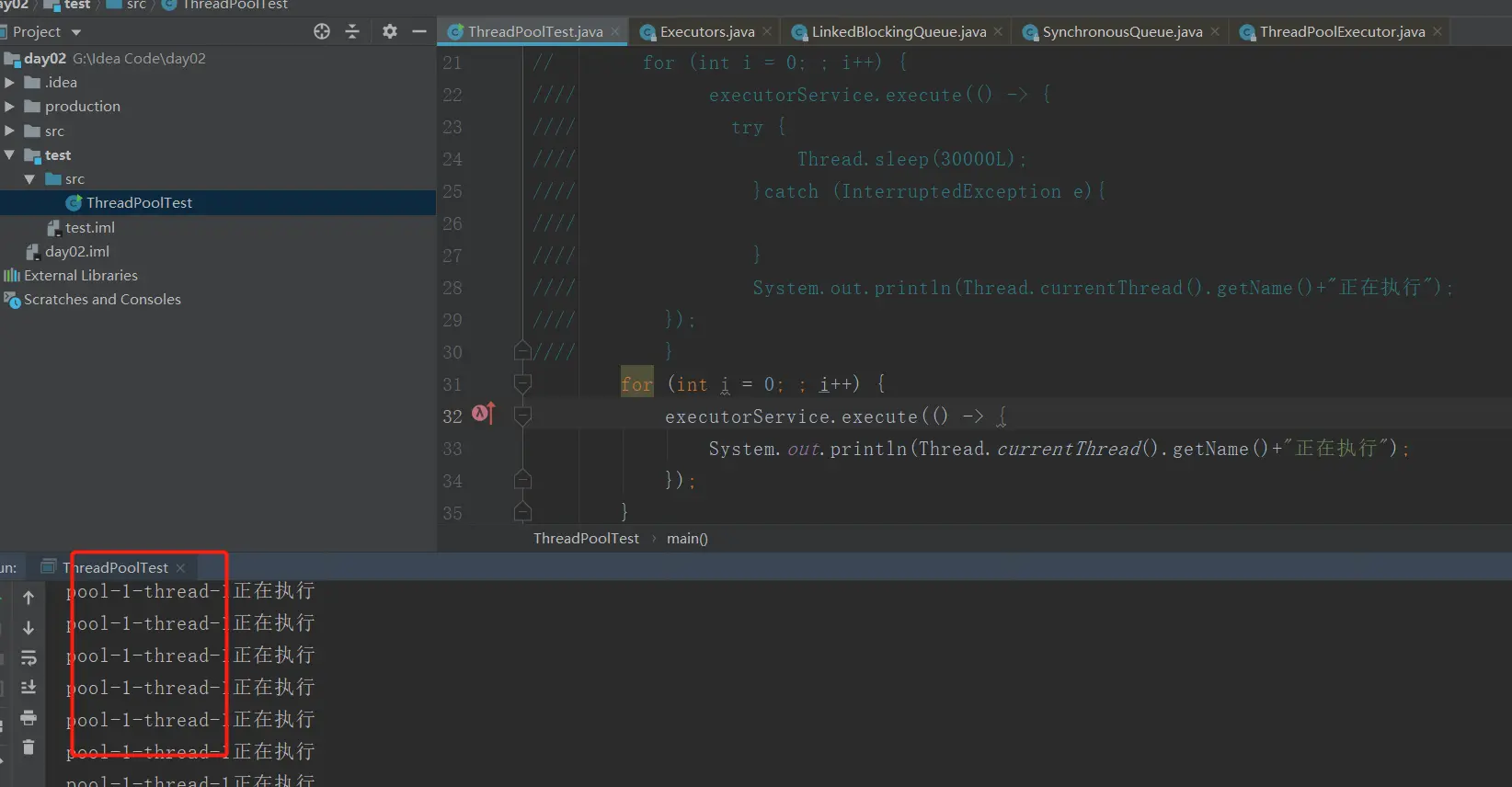 创建返回ThreadPoolExecutor对象