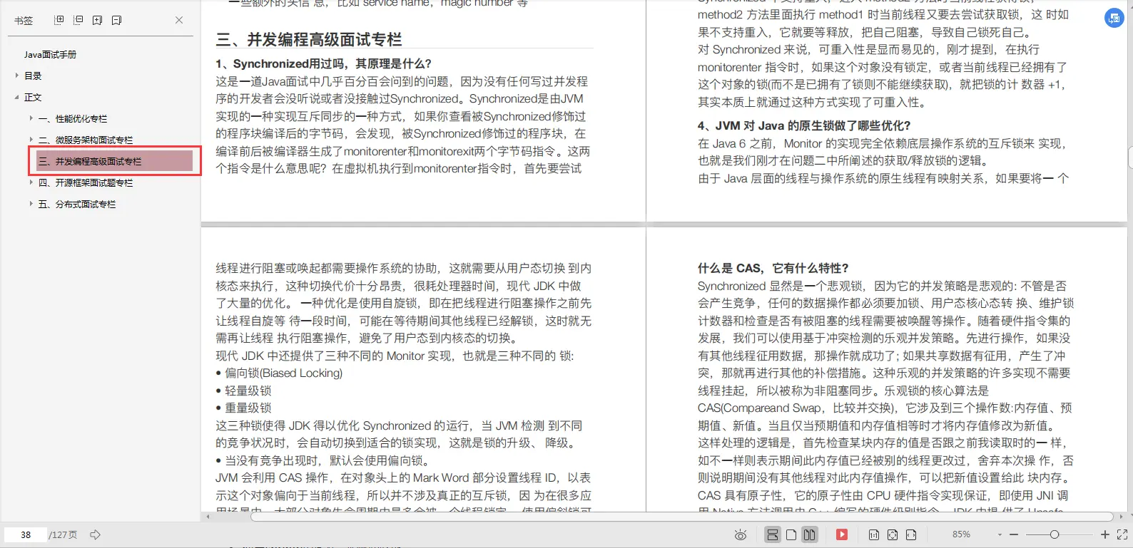 给大家讲题目从PDF文档里面打出来都用了半天,由于问整个PDF实在过于长,解析的话我就截了几张图片,没有都列举出来。所有的解析都整理在PDF文档里面了。希望这份PDF文档对你面试能有一定的帮助。需要源pdf可以关注微信公众号:Java程序员聚集地 获取