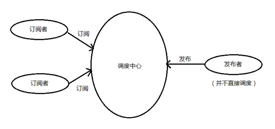 除了发布者、订阅者,还有经纪人Broker(相当于是调度中心,和观察者模式的最大区别)。【发布者和订阅者,不存在耦合】