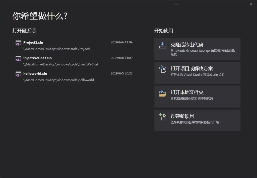 打开 Visual Studio 2019(下载的时候勾选 C++ 桌面支持,6.9G左右),选择创建新项目