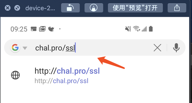 - 接着打开手机浏览器,往地址栏输入 chrl.pro/ssl 回车,正常情况浏览器会帮忙我们下载 charles 证书的,如果没有,请查看步骤一。