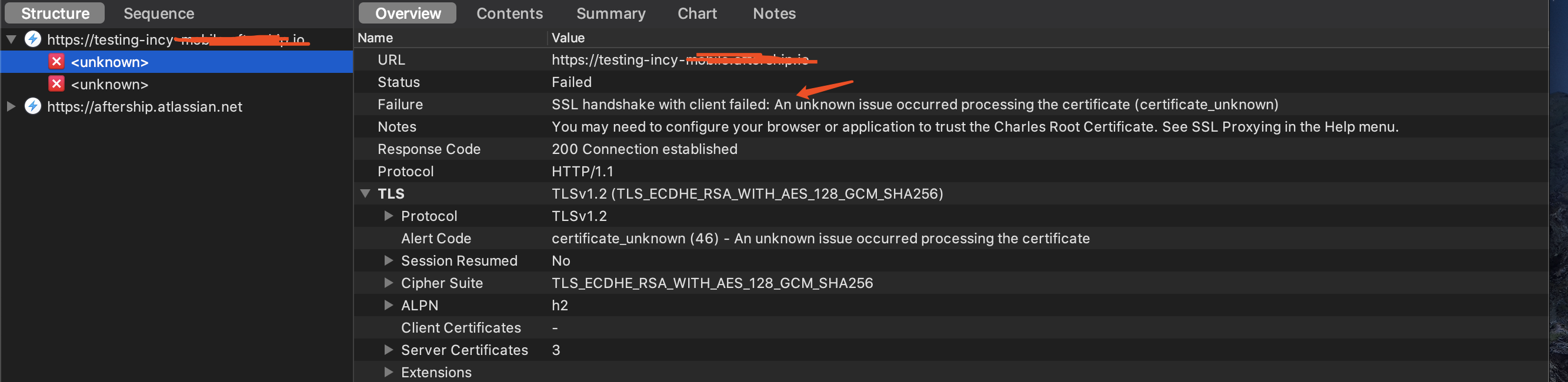 - 上面都已经完成了,我们开始来验证一下我们的劳动成果吧。打开我们的手机需要抓包的应用,发起有效的网络请求,此时再查看 Mac charles 界面,我们发现请求是能抓到了,但总感觉哪里不对,看不到请求和结果啊。