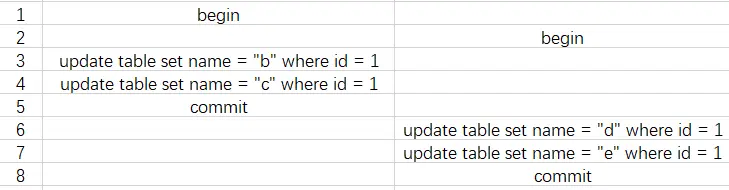 我们现在有这张表,开启两个事务,分别做一些操作。