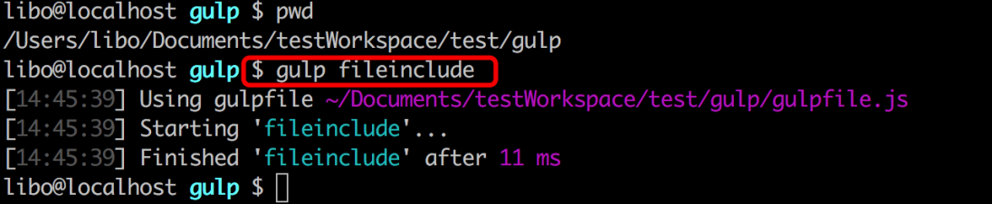 6、执行gulp fileinclude 命令