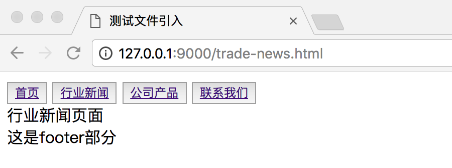 4、在pages目录下新建几个html页面,在每个页面的适当位置引入include目录下的html文件