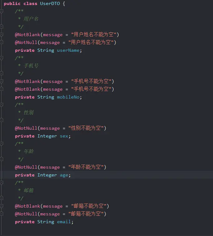 就比如上面我们定义的UserDTO中的参数如果要服用的话怎么办?