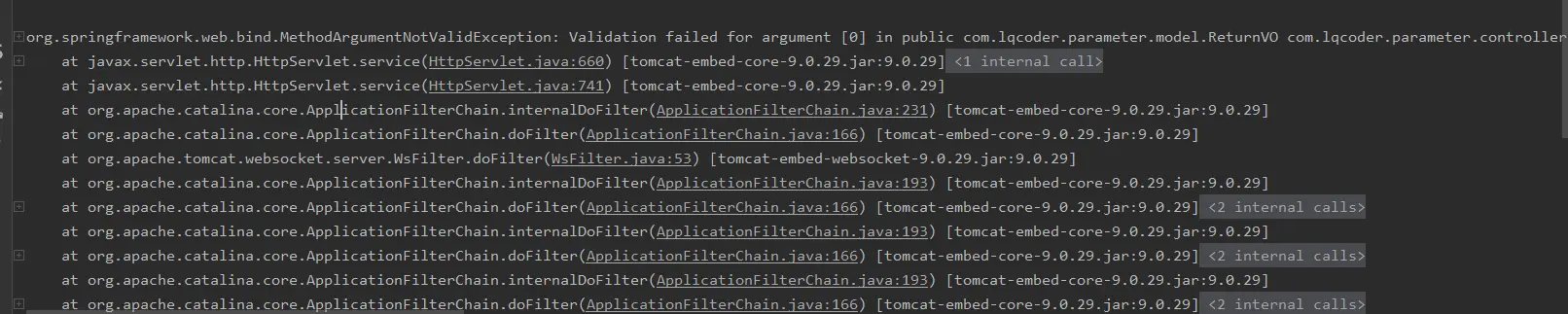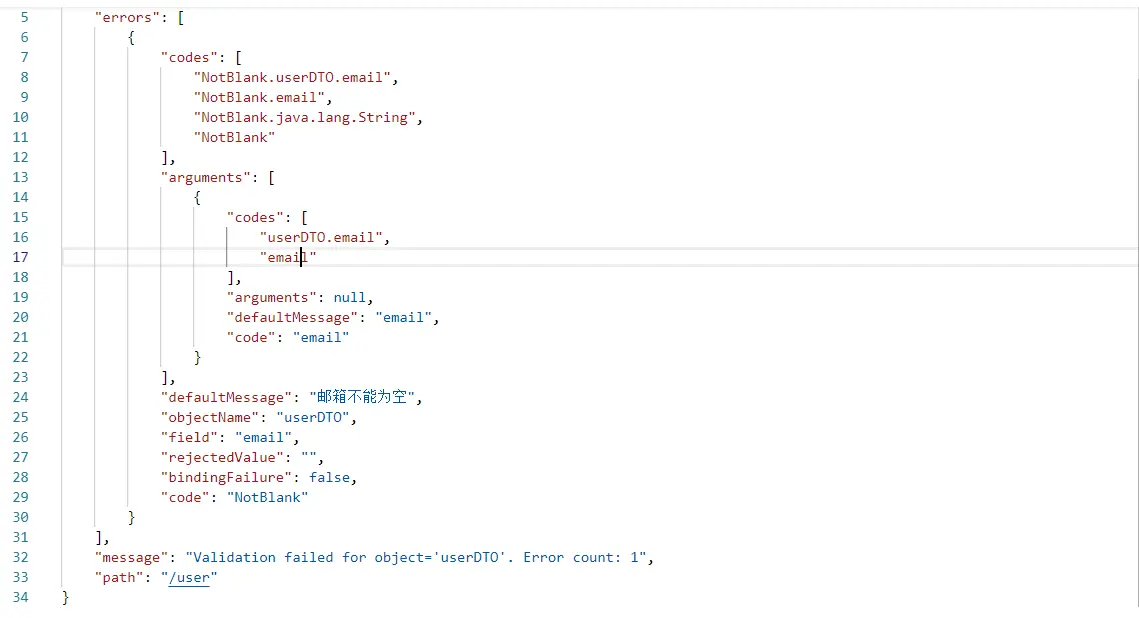 这样是能校验成功,但是有个问题就是返回参数并不理想,前端也并不容易处理返回参数,所以我们添加一下全局异常处理,然后添加一下全局统一返回参数这样比较规范。