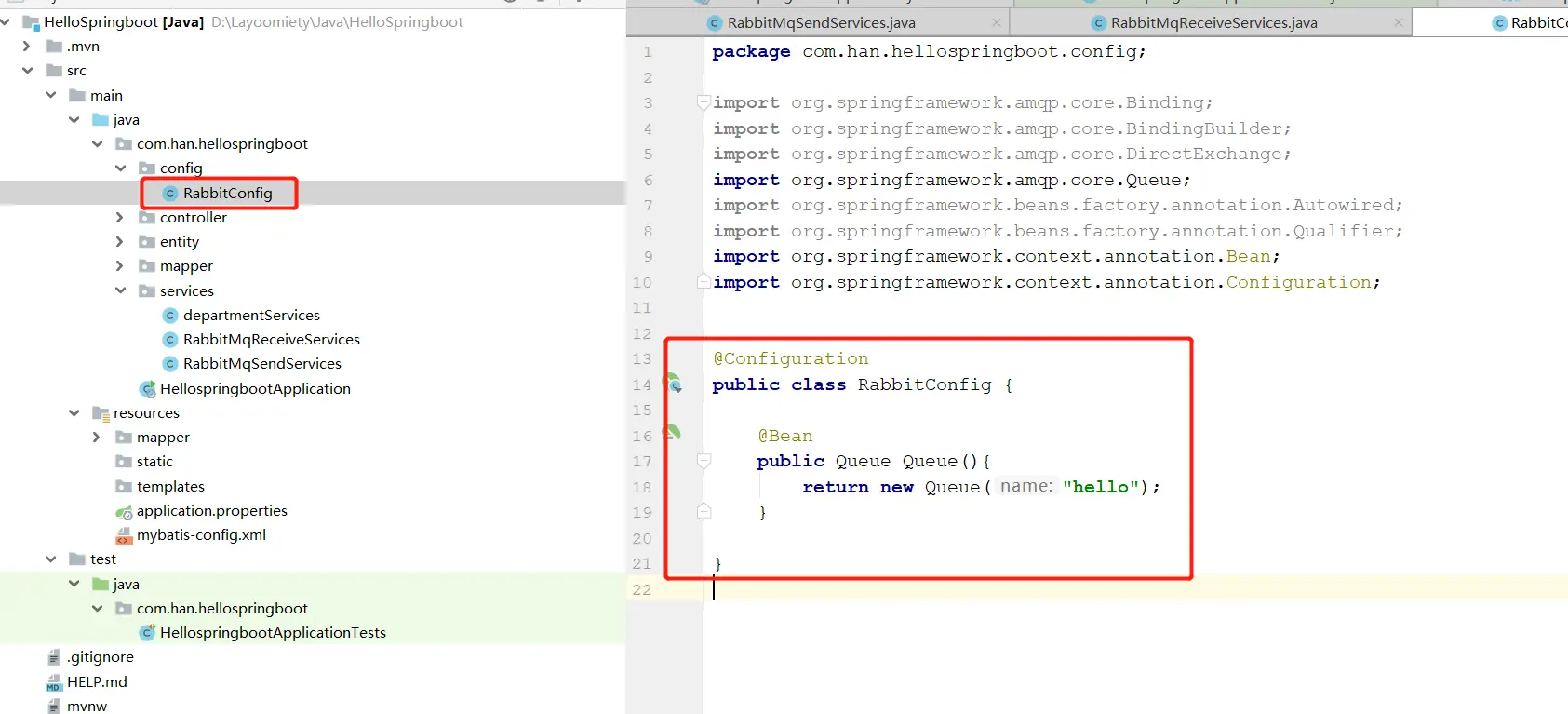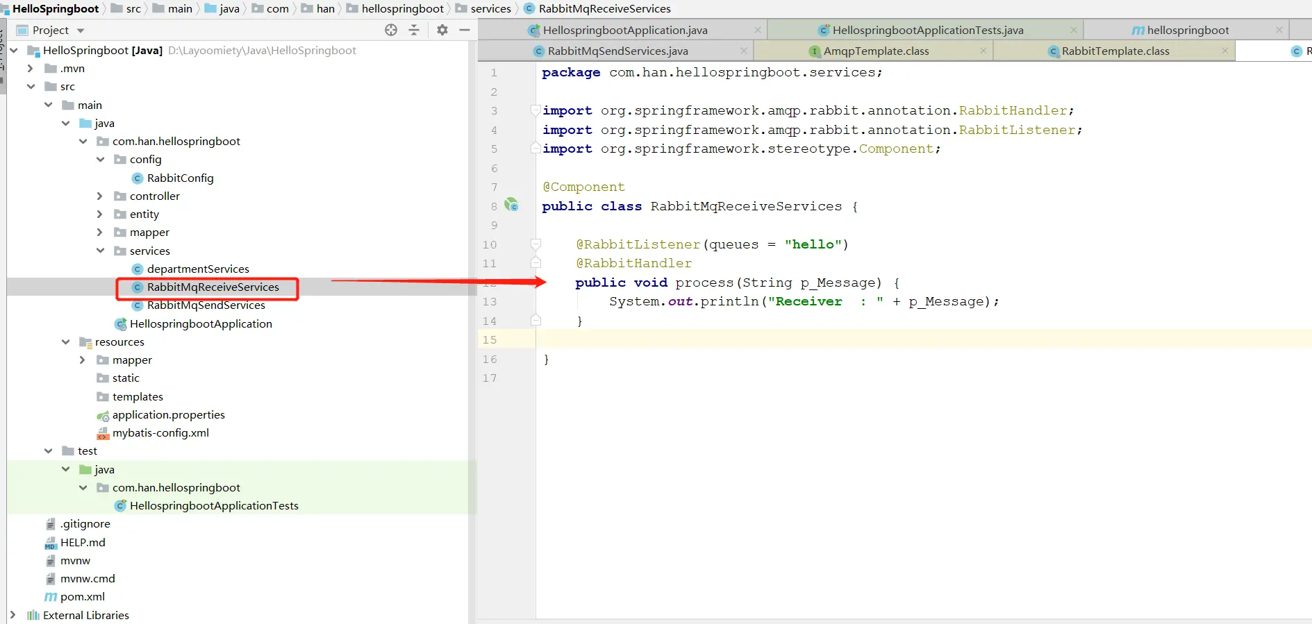 @RabbitListener(queues = "hello")