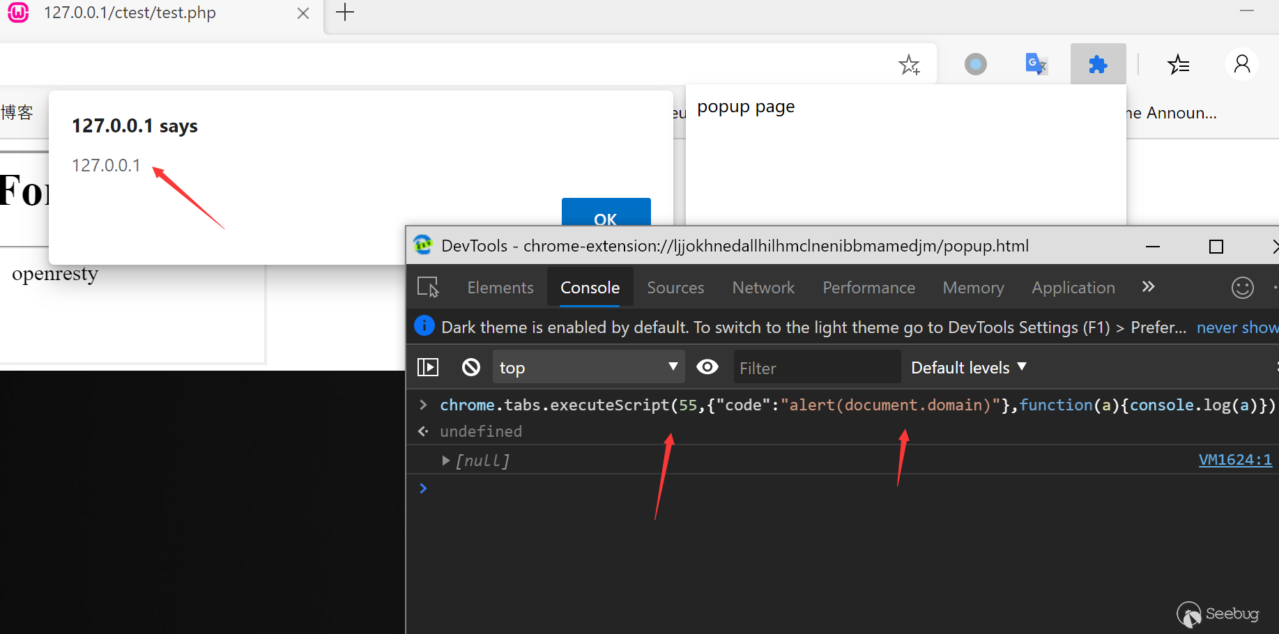 换言之,当插件申请到activeTab权限时,哪怕获取不到浏览器信息,也能任意操作浏览的标签页。