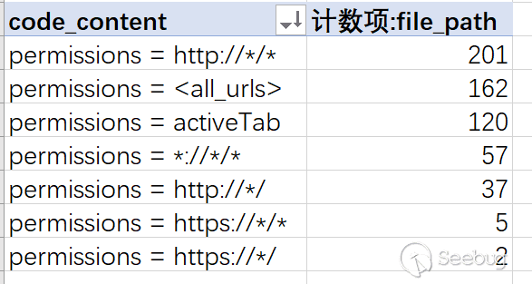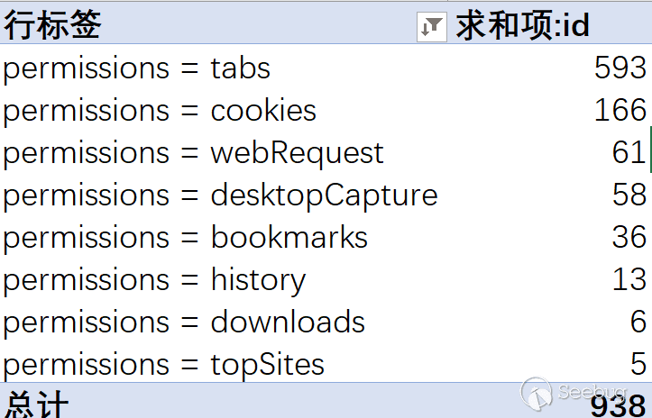 为了能够尽量真实的反映真实世界中的影响,这里我们随机选取1200个chrome插件,并从这部分的插件中获取一些结果。值得注意的是,下面提到的权限并不一定代表插件不安全,只是当插件获取这样的权限时,它就有能力完成不安 全的操作。