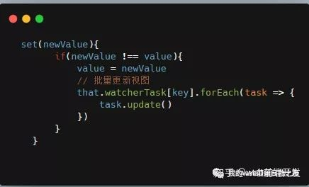 把需要订阅的数据到push到watcherTask里,等到时候需要更新的时候就可以批量更新数据了。👇下面就是;