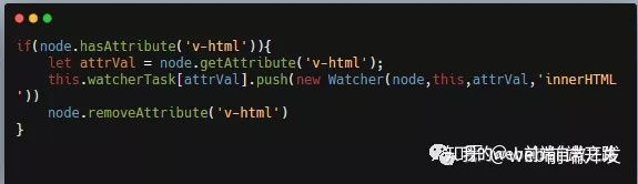 上面这个首先判断node节点上是否有v-html这种指令,如果存在的话,我们就发布订阅,怎么发布订阅呢?只需要把当前需要订阅的数据push到watcherTask里面,然后到时候在设置值的时候就可以批量更新了,实现双向数据绑定,也就是下面的操作