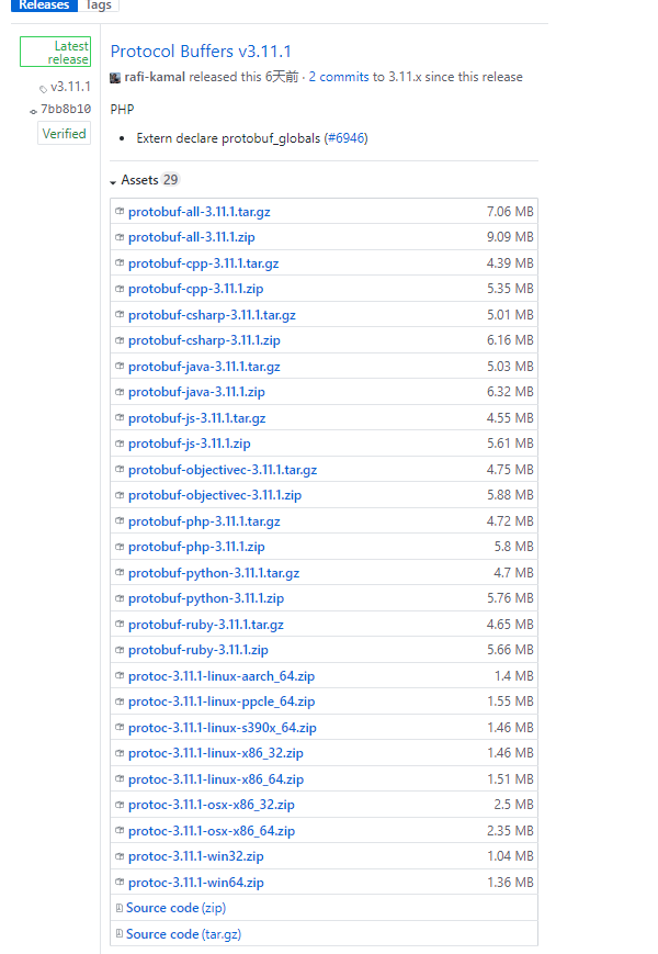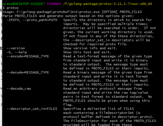 对于非C ++用户,安装协议编译器的最简单方法是从下面页面下载预构建的二进制文件,然后解压,将bin路径加到环境变量path中: