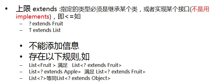// List<Fruit> list = new ArrayList<Apple>();//错误