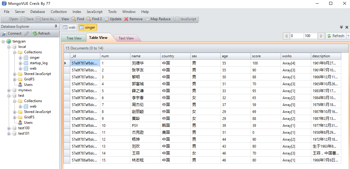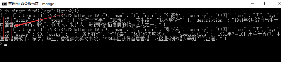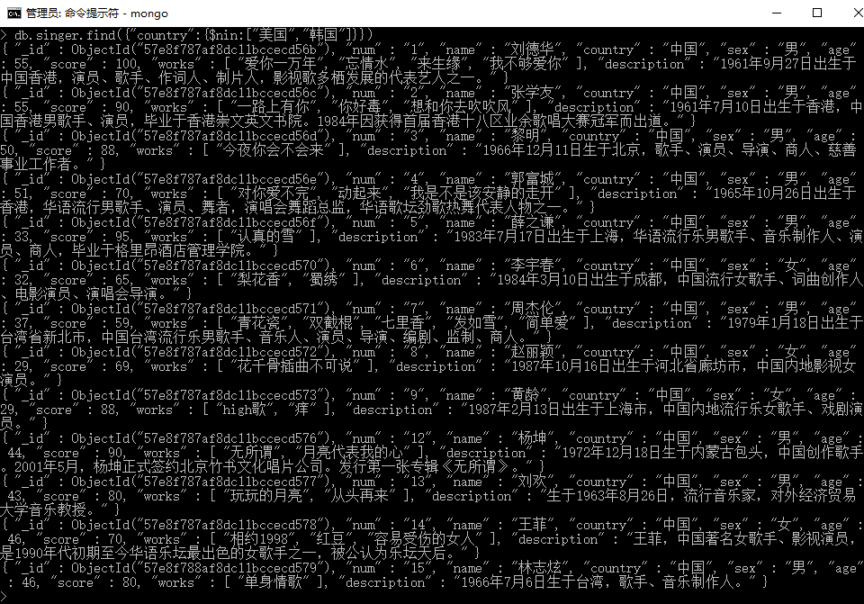 - 条件查找 歌手的json数据,我们可以把他导入到数据库,练习查找命令。