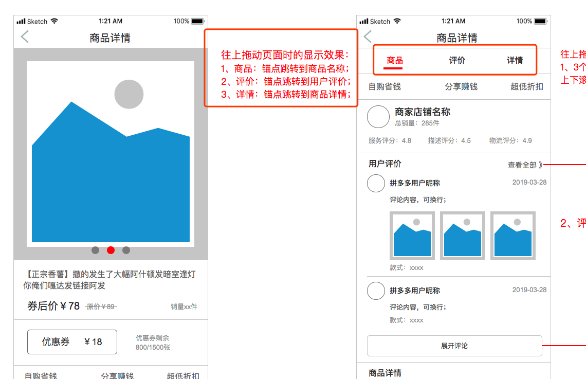 这样就只差获取评论和商品详情的组件位置然后传入具体的Offset就完美执行了,