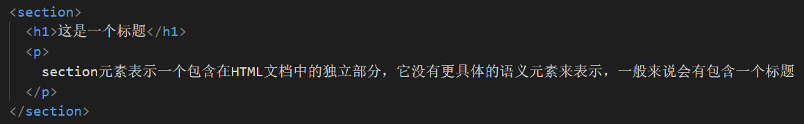 <section>元素表示一个包含在HTML文档中的独立部分,它没有更具体的语义元素来表示,一般来说会有包含一个标题