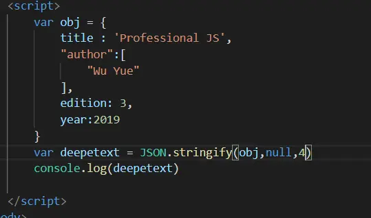JSON.stringify() 一共有三个参数,第二个参数是个过滤器 可以是一个数组,也可以是一个函数。 第三个参数是一个选项,表示是否在json字符串中保留缩进。请看下列实例: