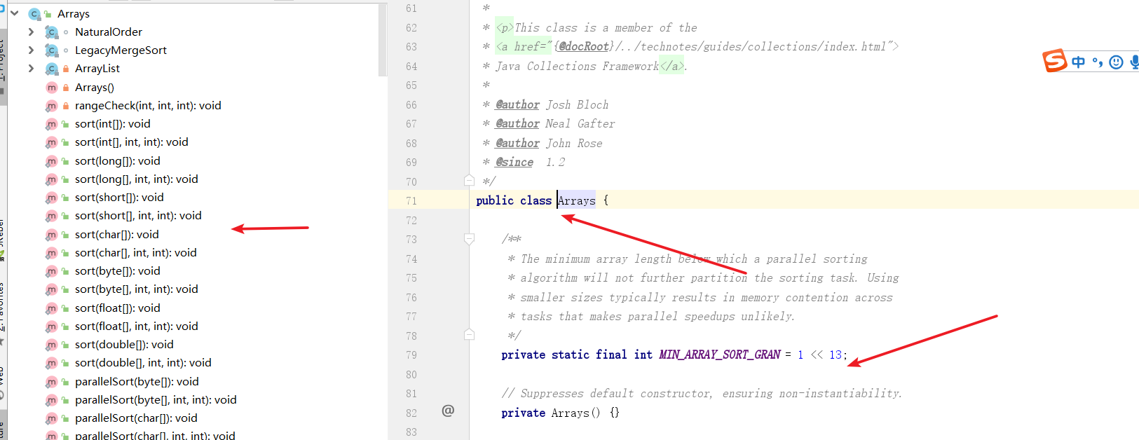 对数组操作有一个工类类Arrays,大家可以学习一下,源码定义常量的方式我们也可以学习一下,用位运算,还是不错的。