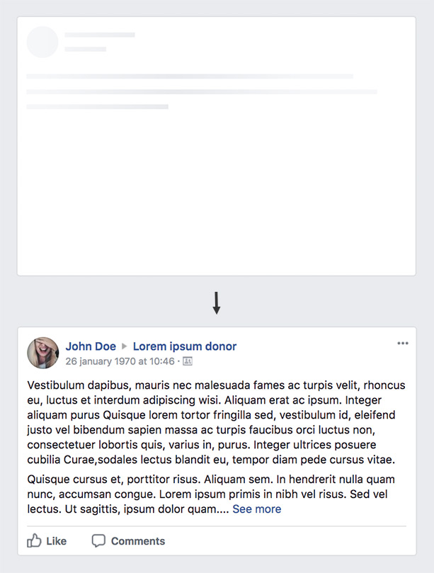 - facebook将用户固定的头像,author,日期和一小部分文字作为骨架主体
