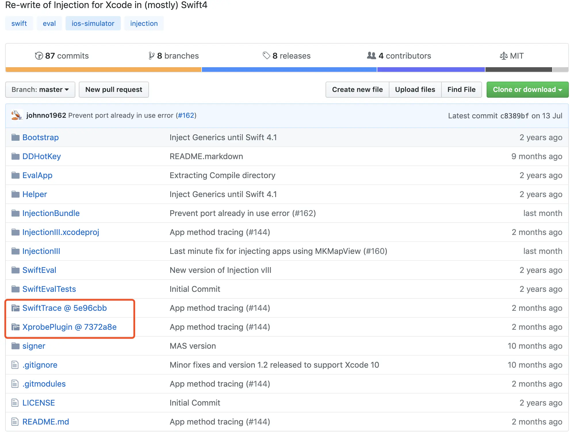 因此到 InjectionIII 的 github 上去看个究竟,发现 SwiftTrace 和 XprobePlugin 是这样的