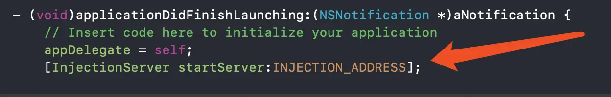 我们需要热加载的项目的 willFinishLaunchingWithOptions 方法里面要加载 iOSInjection.bundle。这个作为客户端和 InjectionIII 通信。注意,bundle 是不能被链接的 dylib,只能在运行时使用 dlopen() 加载。