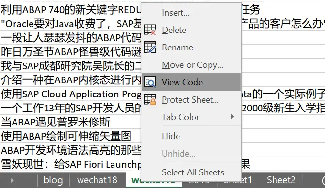 在Excel里点击右键,选择View Code: