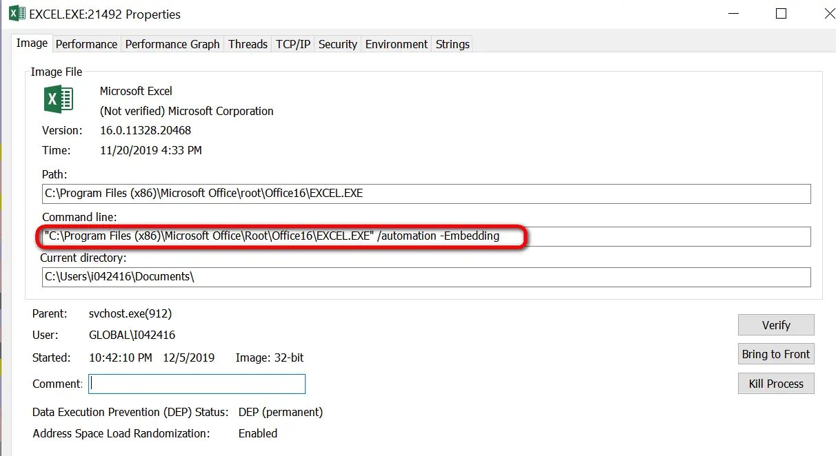 我们采用OLE的方式操作Excel时,打开Windows操作系统的任务管理器,会发现一个以/automation -Embedding参数启动的Excel进程。