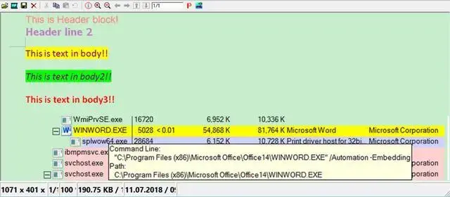 以Word为例,下图是我创建了一个最简单的Word文档,包含了一个Header区域,一个由三行彩色文字组成的段落,还有一张图片。
