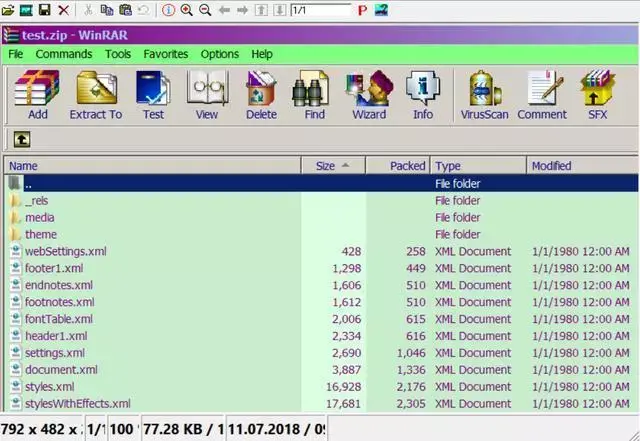 我们把这个Word文档的扩展名从.docx改成.zip, 然后双击,就可以用解压软件比如winrar打开。