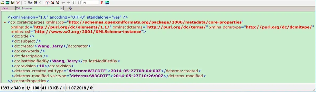 (2) word文档的创建者,创建时间,最后修改时间等信息都存储在所谓的“Core property part”内,可以通过方法lo_document->get_corepropertiespart获得"Core property part"的引用,再使用该引用调用方法get_data获得实际内容。