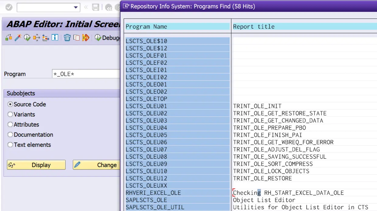 最后,大家在SE24里使用关键字XSLX以及SE38里搜索_OLE,