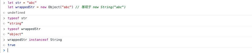 console.log(typeof wrappedStr) // 'object'