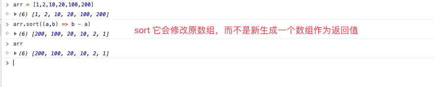 console.log(arr) // [ 200, 100, 20, 10, 2, 1 ] 原数组被修改了!