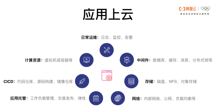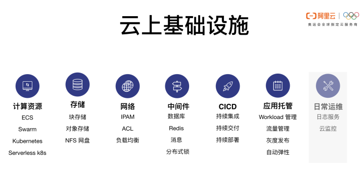 应用要提供服务首先要有计算、存储和网络资源才能把进程跑起来。当然这些也仅仅是把进程跑起来,如果要承接具体的业务还需要依赖数据库等服务;如果要做分布式架构还需要做微服务拆分,这时候就需要缓存、注册中心、消息各种中间件的服务。
