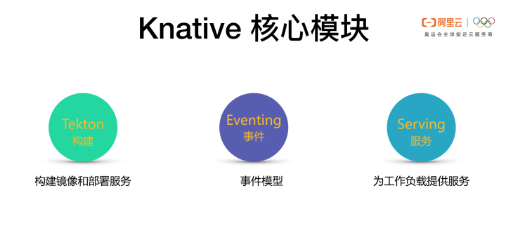 Knative 由三个核心模块构成:Tekton、Eventing 和 Serving。