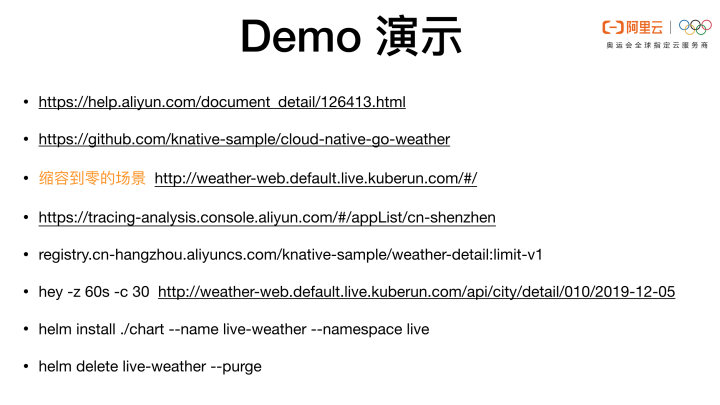 把 Knative Service 的地址注册到注册中心,通过 Knative 的能力实现微服务的流量切分、灰度发布和弹性。这样 Knative 就给普通的微服务应用赋予了 Serverless 能力。