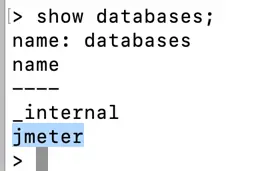 创建完JMeter数据库之后执行如下命令验证数据库已经创建成功: show databases;