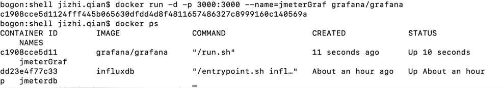 启动 influxDB 容器,将新 influxDB 容器命名为 jmeterdb, 执行docker创建命令: