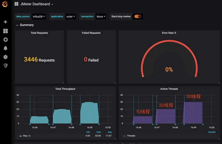 Grafana是一种度量分析与可视化图标展示工具,可以支持不同种类的数据源。读到这里你会发现,这个工具并不是jmeter内置工具,使用起来稍有些麻烦!