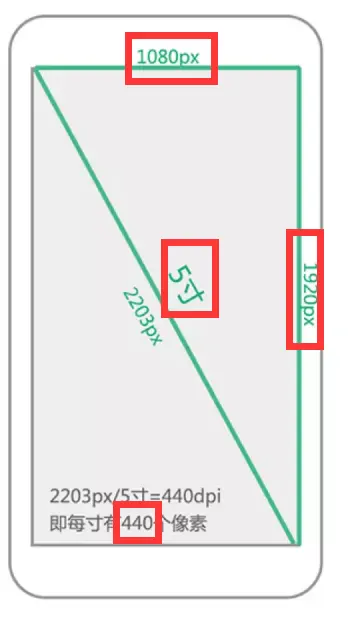 我这里有一块1920*1080的5寸屏幕,通过上面的公式计算得出,它的像素密度为 440dpi . 可见,px是和像素密度有直接关系的 像素单位。