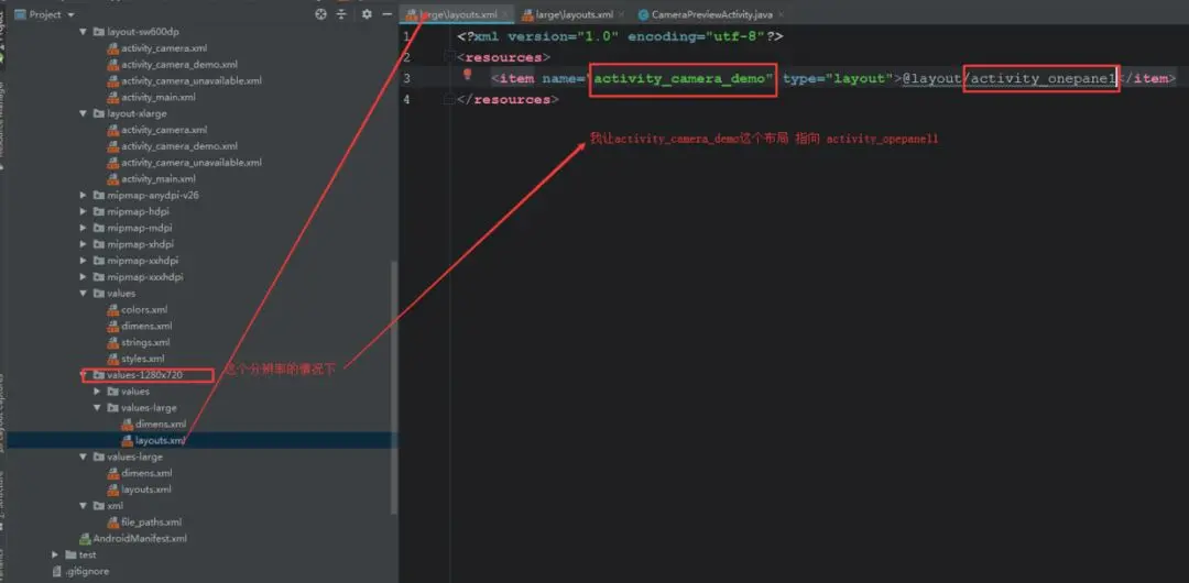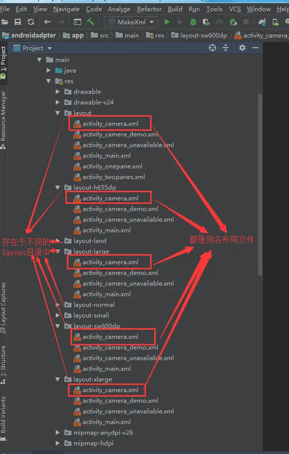 使用多套布局适应不同屏幕。此方法必须要了解 布局限定符的概念。如图: