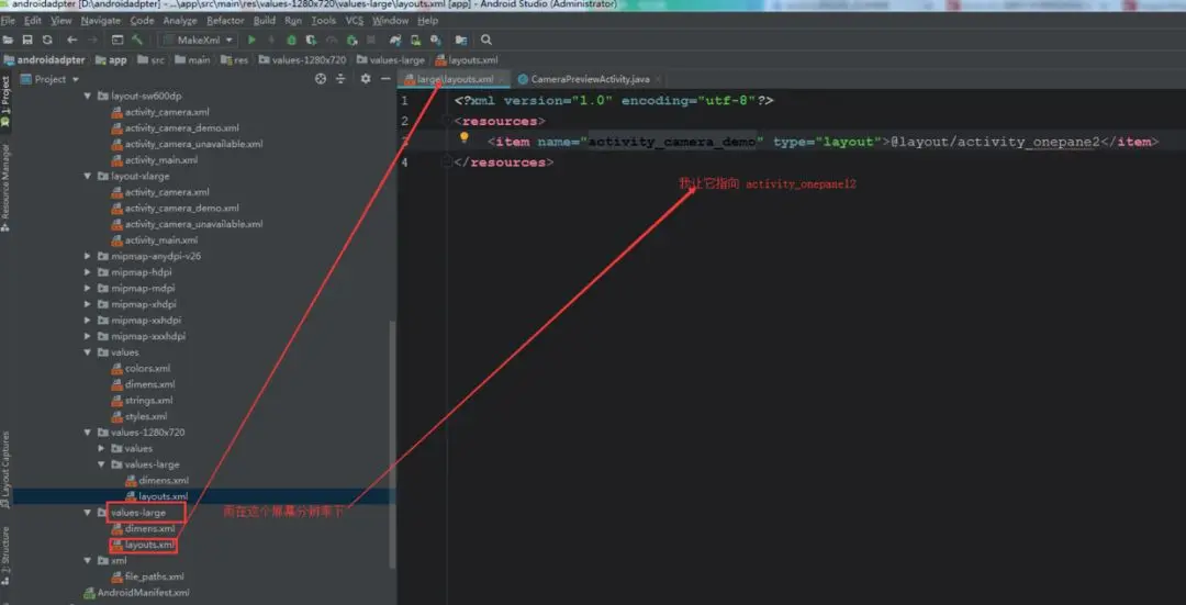 使用上面的限定符,几乎可以解决所有的适配问题,但是另外还有一个小技巧帮我们节省工作量 : 布局别名.