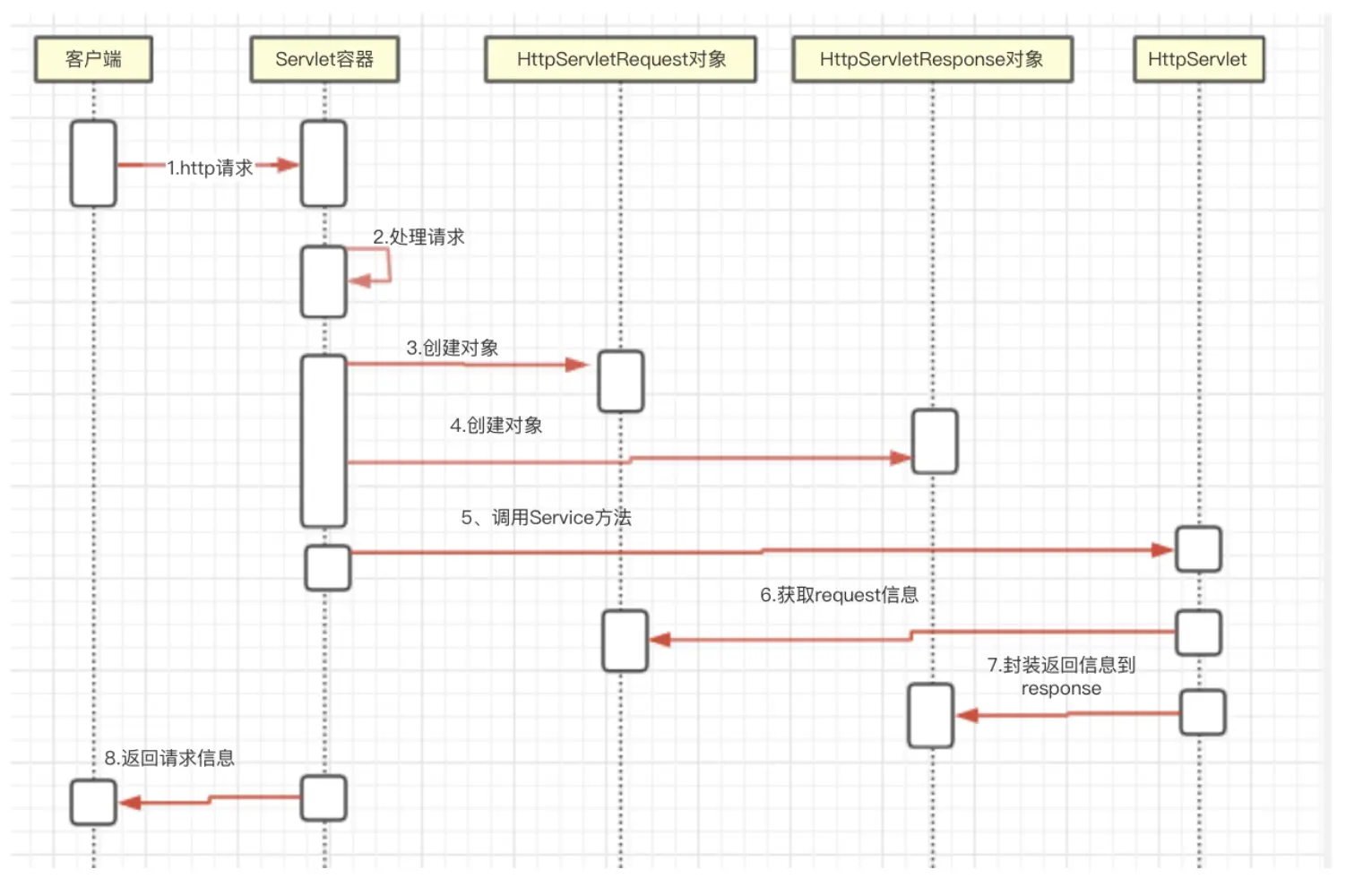 - HttpServlet从request中获取请求信息,处理完毕后将返回值信息封装到HttpServletResponse对象