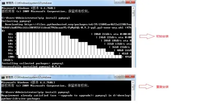 启动命令行,联网的前提下键入命令: pip install pymysql