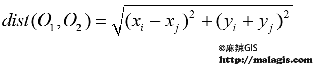 “中心距离”是指两个面状物体的质心之间的距离;